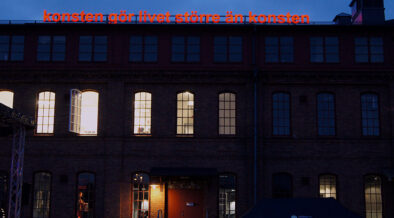 ”Konsten gör livet större än konsten”* står det i stora bokstäver på kulturhuset Skylten i …